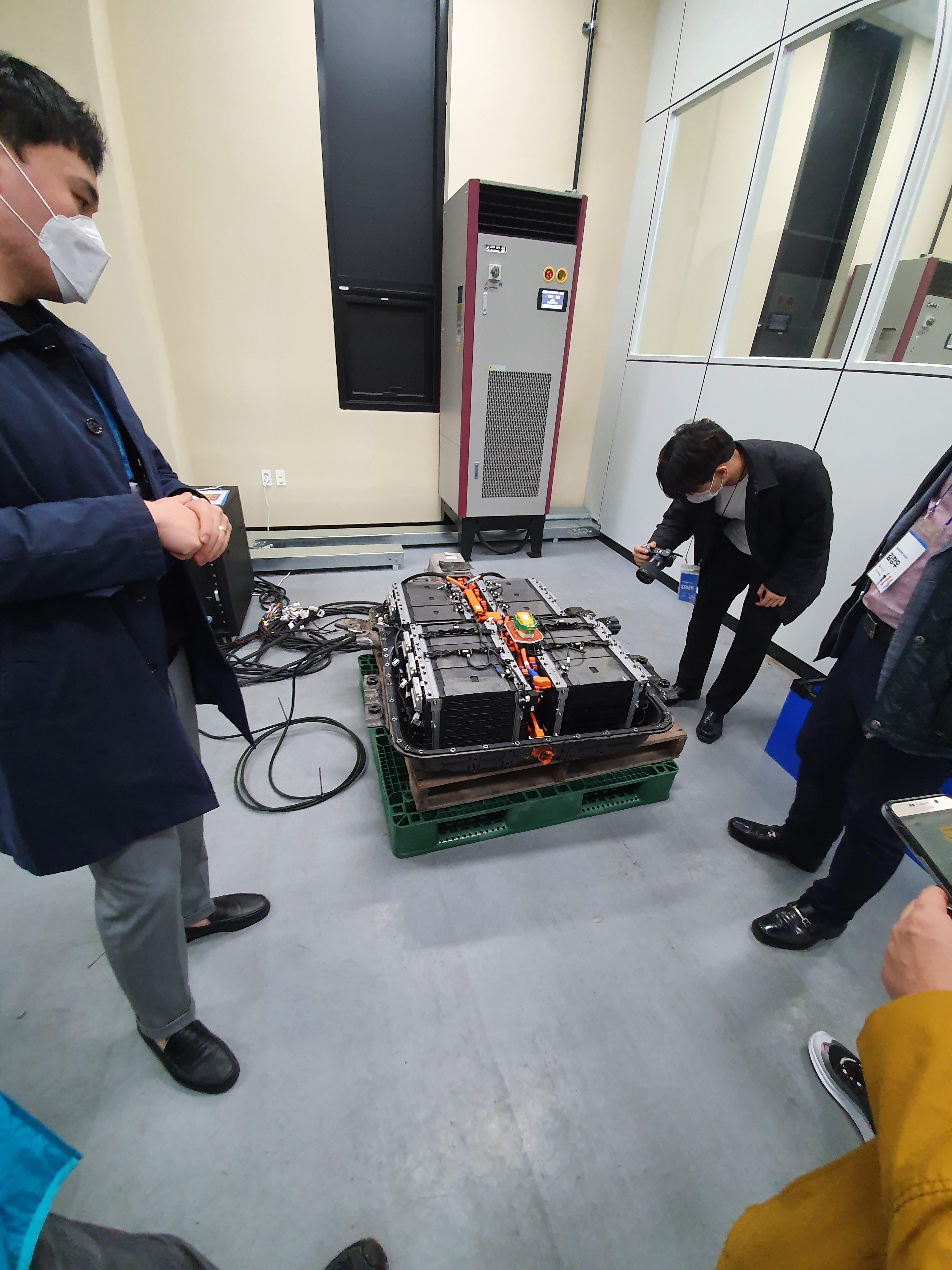 다음으로, 배터리 산업화 센터 견학하였다. 전기차 배터리 산업화 센터에 폐배터리가 입고되는 순간부터 재활용되기