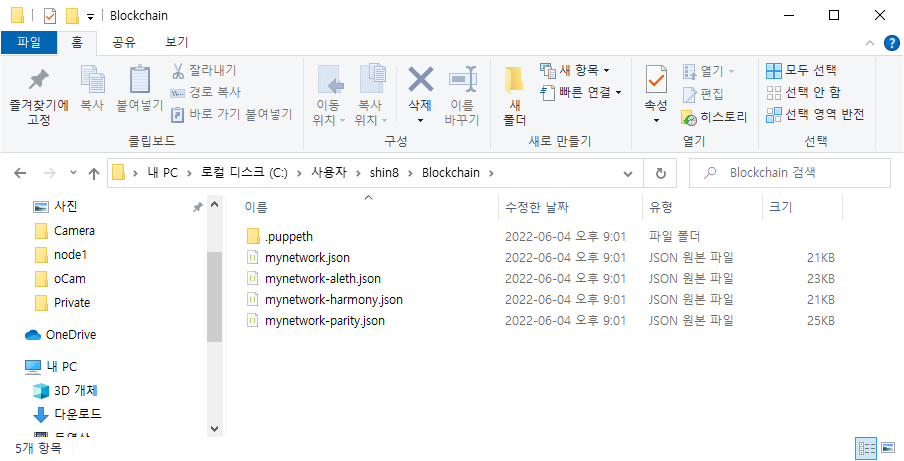 해당 경로로 가서 제네시스 파일이 생성됐는지 확인한다.