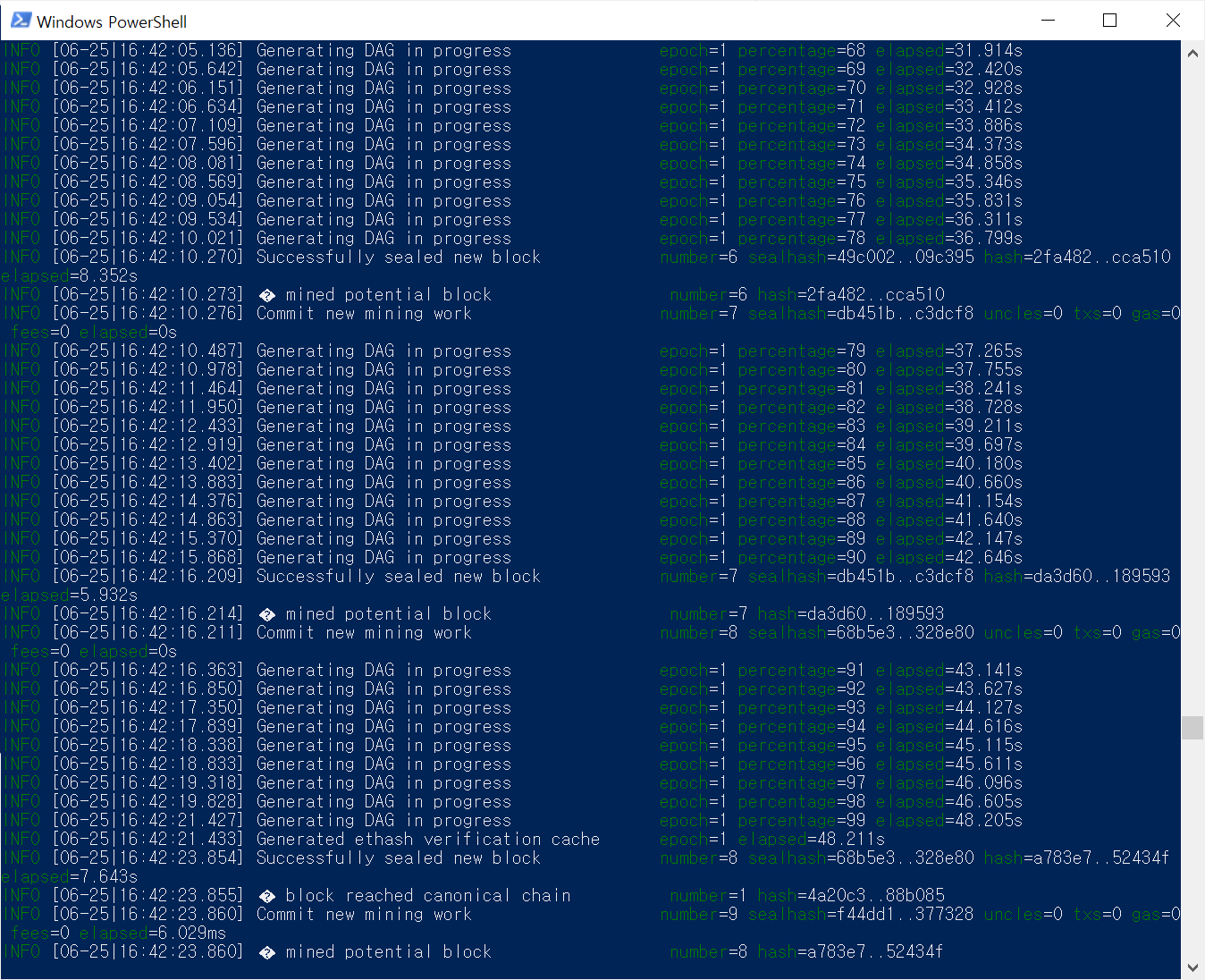나. Geth로 프라이빗 노드 구축 II (노드 첫 실행, DAG 파일 생성)