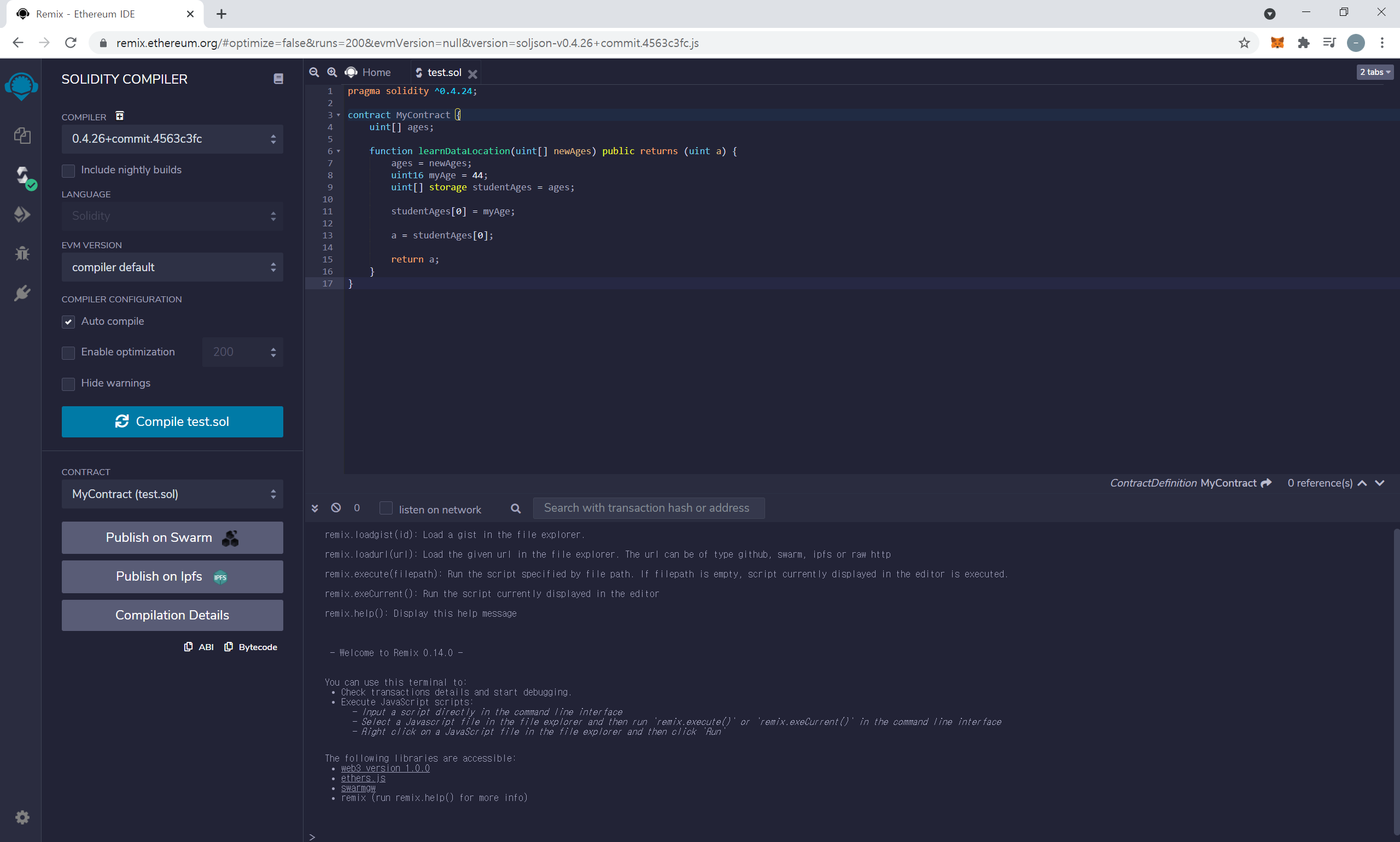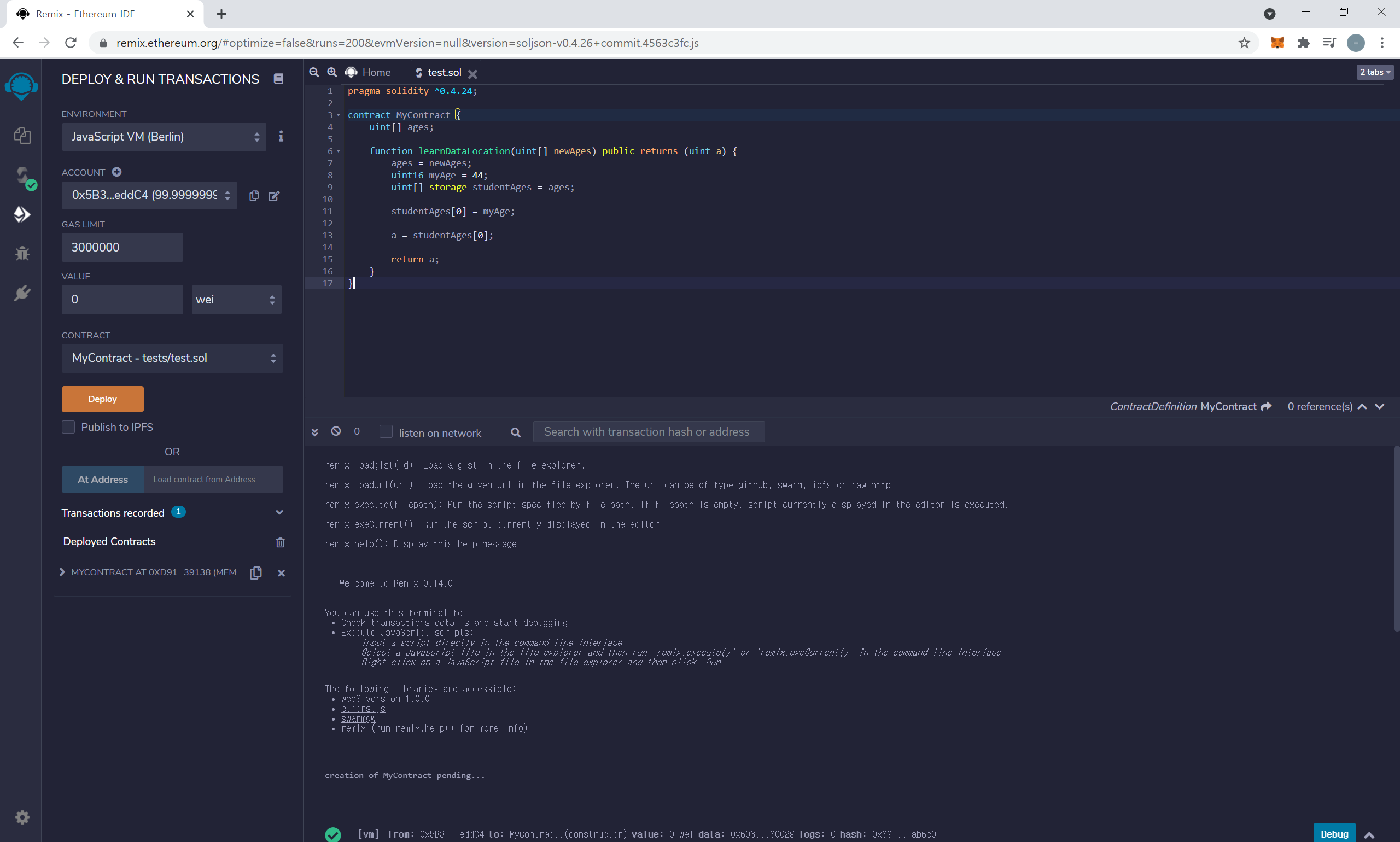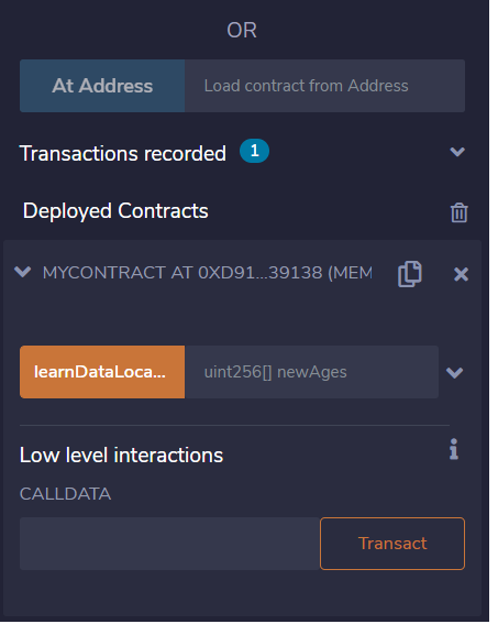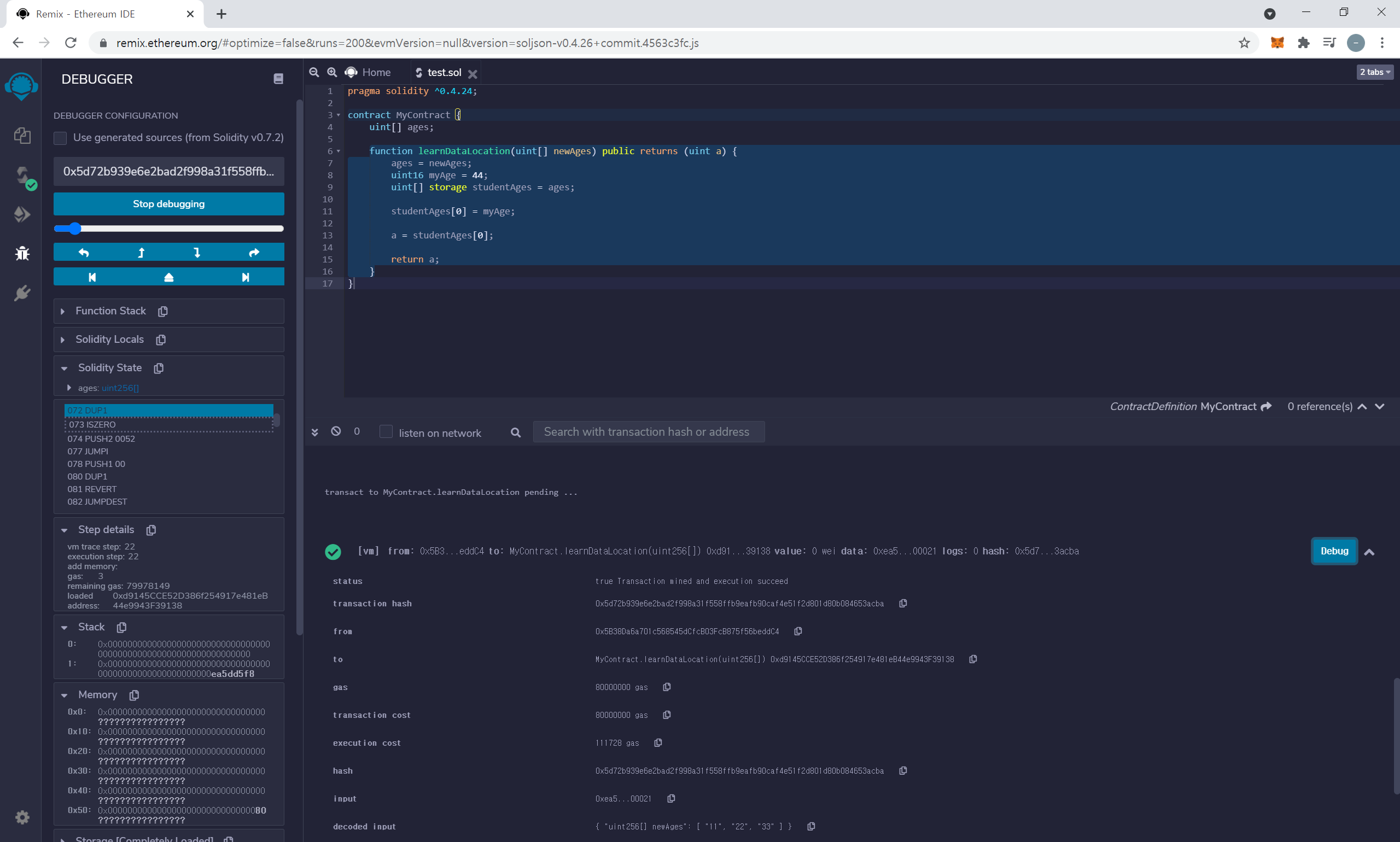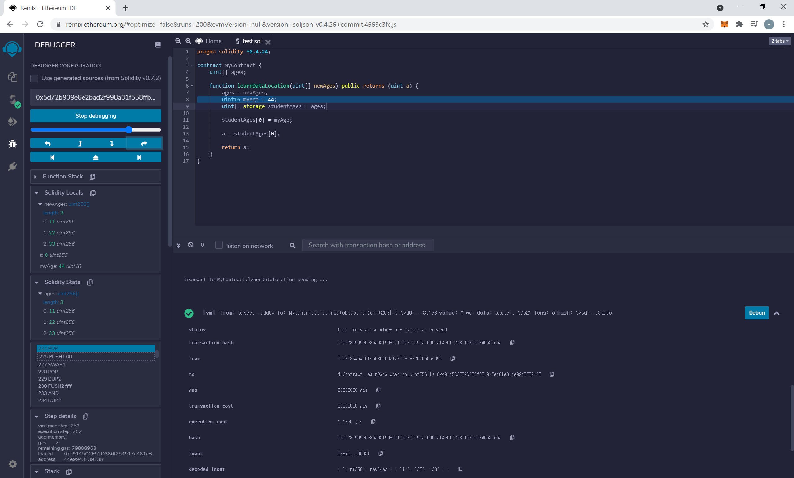 function learnDataLocation(uint[] newAges) public returns (uint a) {