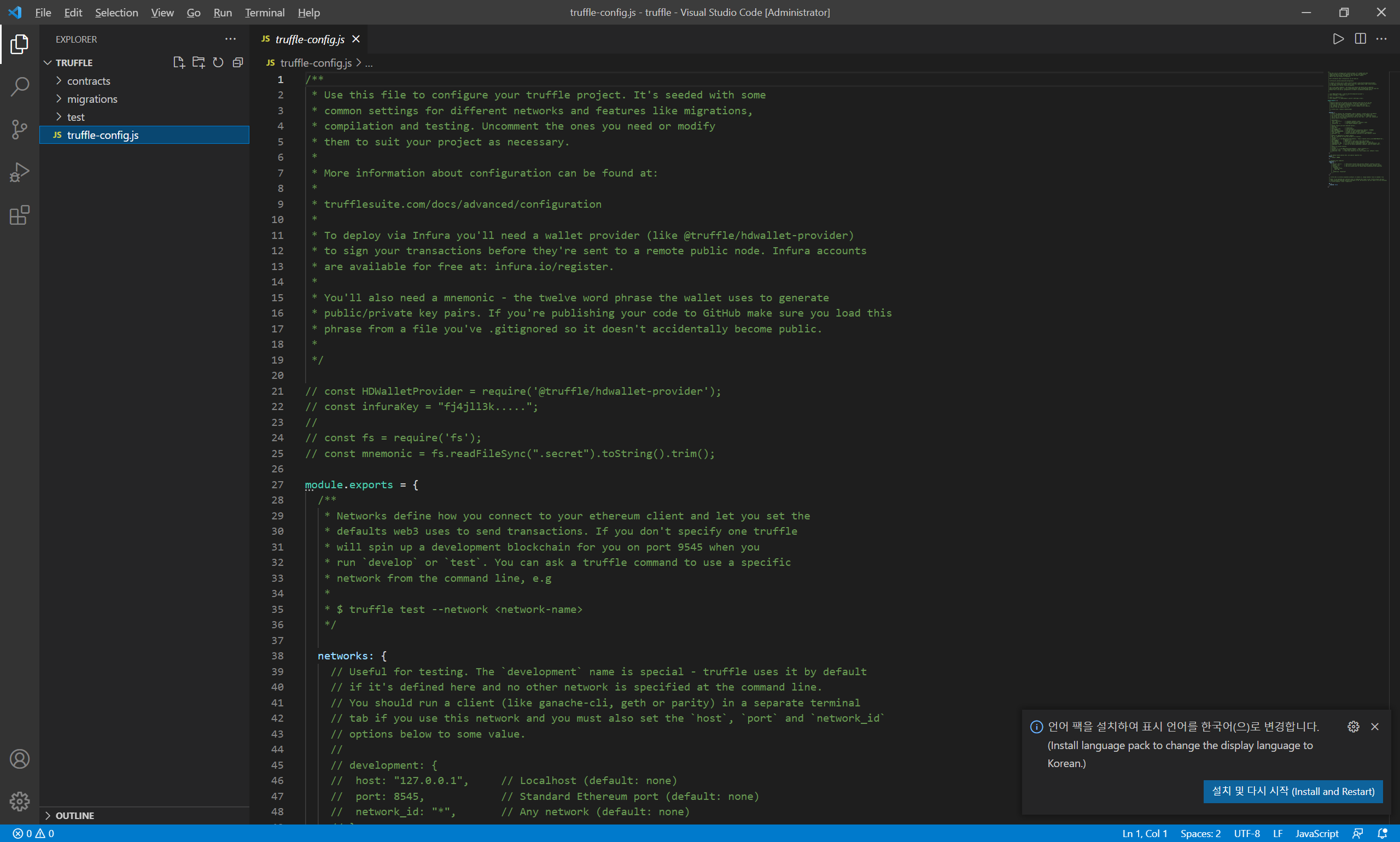 2. truffle 초기화 하기