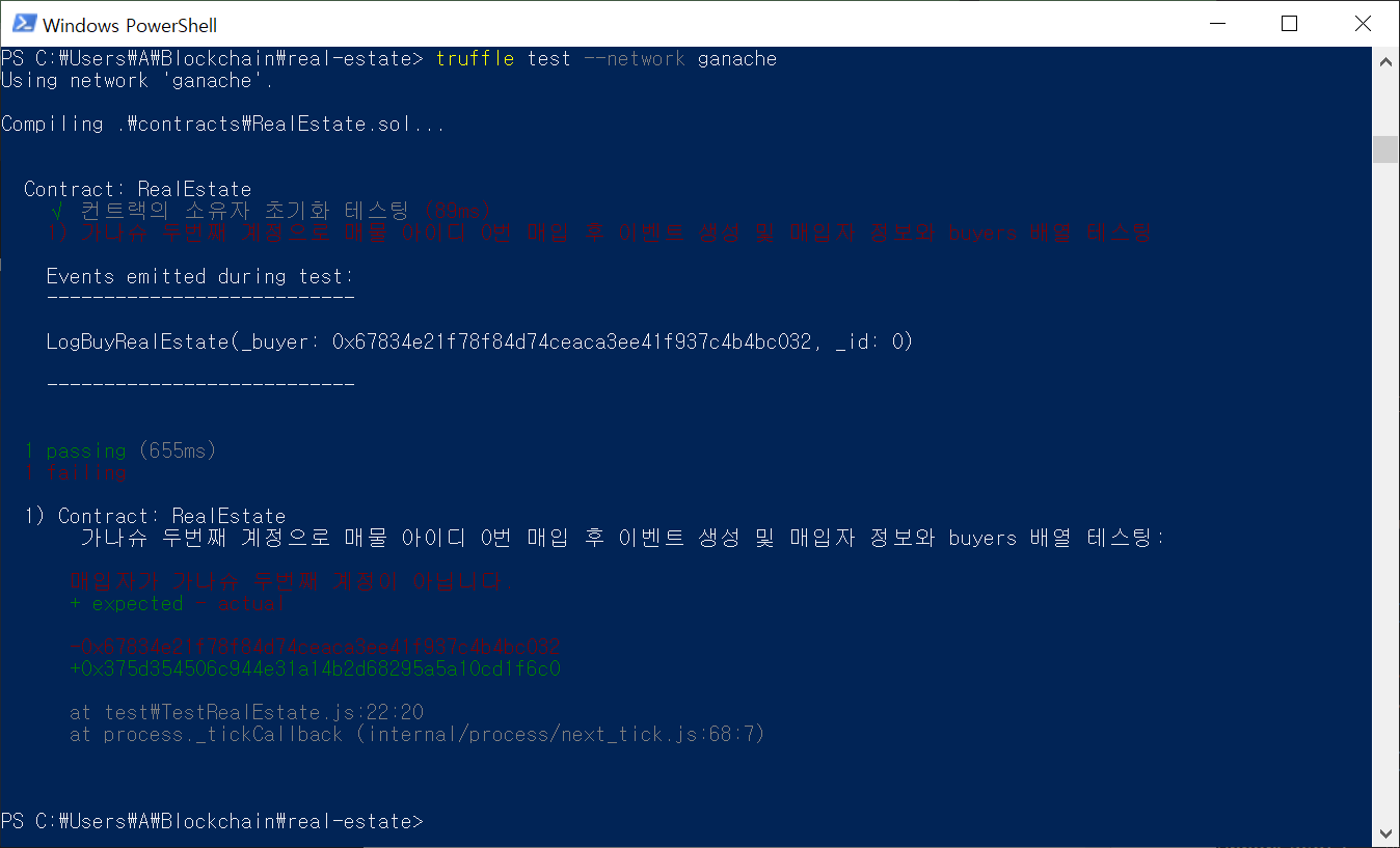assert.equal(receipt.logs[0].event, "LogBuyRealEstate", "이벤트가 LogBuyRealEstate가 아닙니다.");