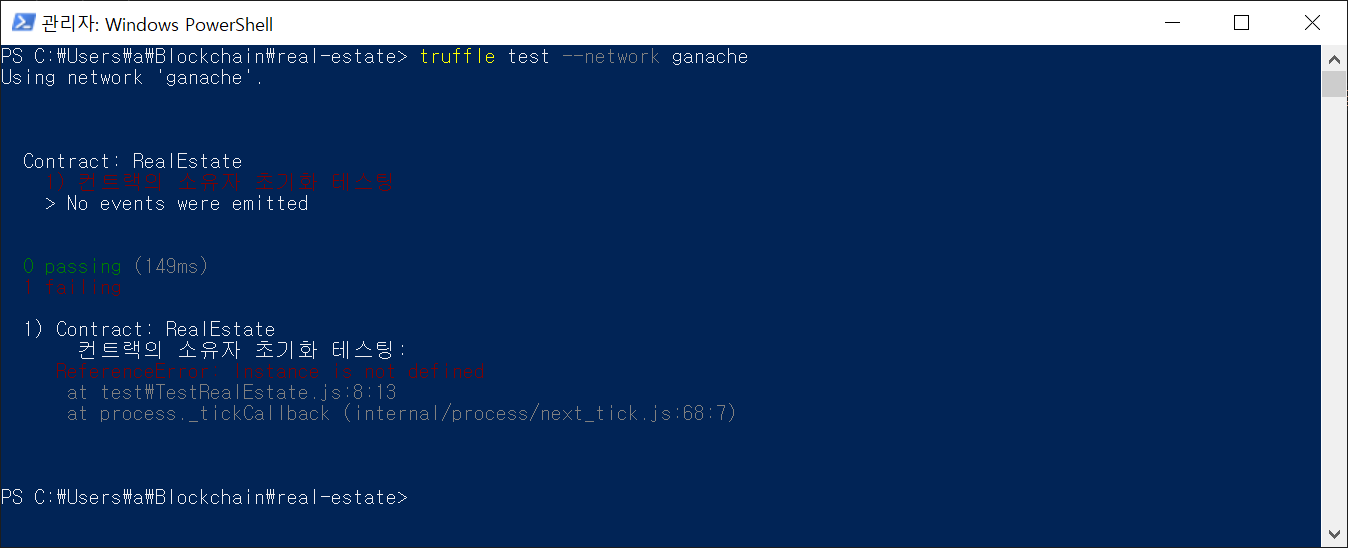 결과는 실패 ! Error: VM Exception while processing transaction: revert