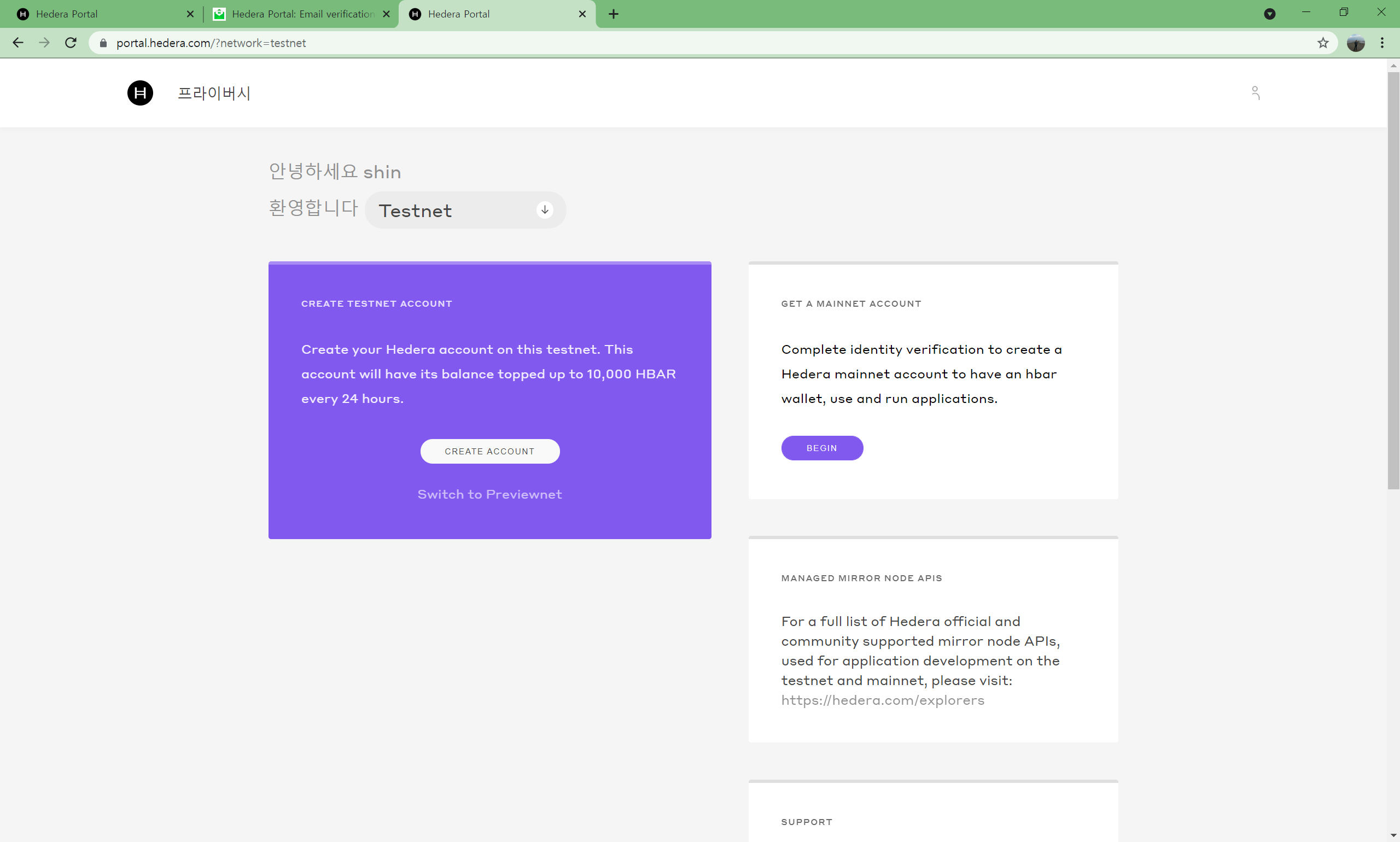 네트워크 서비스(암호화폐, 합의, 토큰, 파일 및 스마트 계약)와 상호 작용하고 비용을 지불하려면 Hedera 테스트넷 계정 또는 미리보기 테스트넷 계정이 필요합니다. 귀하의 Hedera 테스트넷 계정은 다른 계정으로 이체하거나 네트워크 서비스에 대한 지불에 사용할 hbar의 잔액을 보유하는 것입니다.