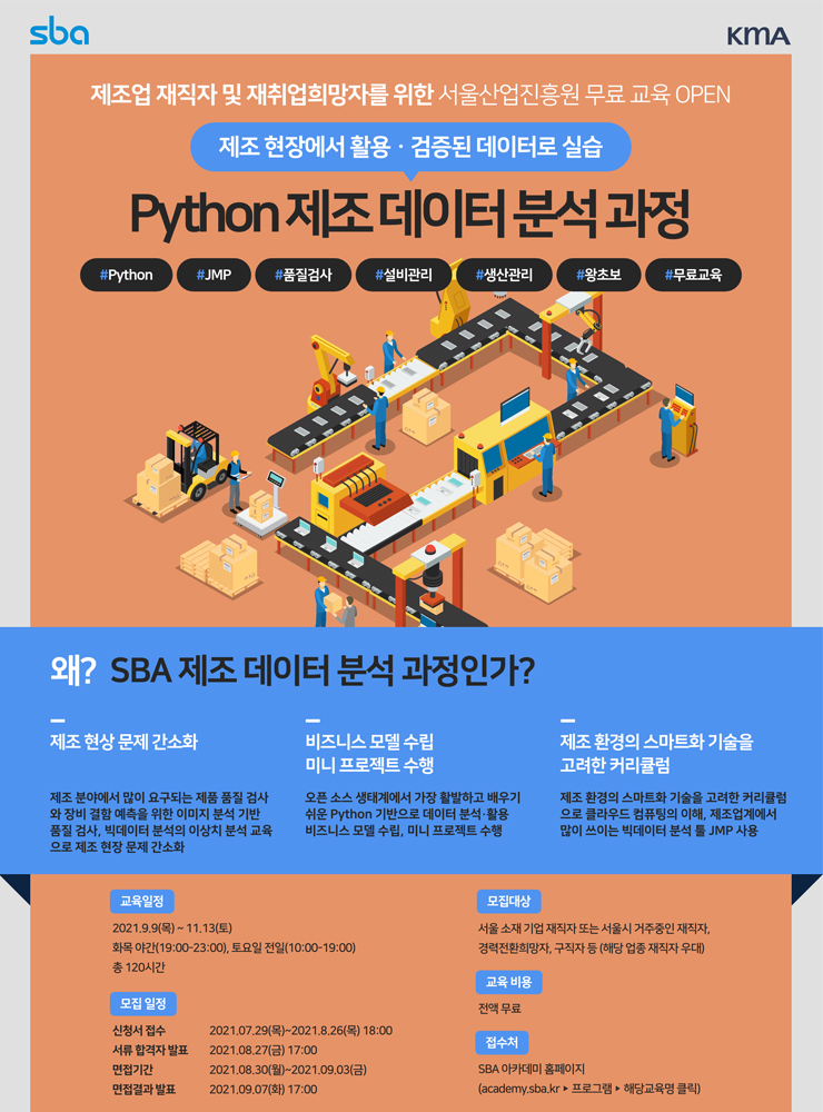 서울산업진흥원 SBA아카데미에서 진행하는 DT스쿨(디지털 전환 인재양성 교육과정) [제조 DT스쿨] 지원 신청 페이지입니다. 👉🏻 모집일정 : ~ 2021년 8월 26일 목요일 18:00 까지 👉🏻 모집과정명 :
