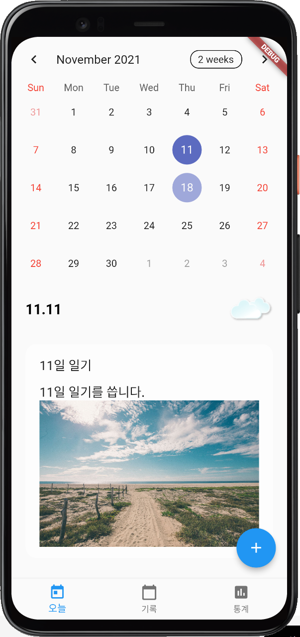 오늘은 작성했던 내용을 기록탭에서 확인 가능하게 로그 기능을 구현 하였다. 이를 위해 플로터 안에 내장되어있는 캘린더 라이브러리를 사용하였다. pubspec에 table_Calender 를 추가하고, getHistoryPage 위젯에 index 가 첫번째 화면이면 TableCalendar() 함수를 호출하여, 캘린더를 띄울수 있게 해야한다. 이때 주의 해야하는게 Calendar 컨트롤러를 반드시 추가해줘야 에러가 나지 않는다. (calendarController), 실제 날짜가 선택 됐을때 onDaySelected 함수를 사용하여 날짜가 클릭하면, 그 날짜에 맞는 다이어리를 추가해줘야 하는 방법에 대해서도 배우게 되었다. 또한 선택된 다이어리 날짜를 띄우기 위해 history diary 를 추가하였고, 해당된 날짜에 일기가 없다면 빈값을 띄울수 있게 예외처리도 구현하였다. 또한 이전 날짜를 클릭하여 + 버튼을 클릭하면 일기 기록을 추가할수 있도록 구현하였다. 이때는 DateTime time 을 하나 만들고 floating Action 버튼을 수행할때 idx=0 첫번째 페이지에서 실행시 history diary가 작성할수 있게 해준다. 마지막으로 실제 다이어리 안에 내용만 있으면 너무 밋밋하여 배경이미지를 추가할수 있게 Box decoraton 을 추가하여 좀더 일기 앱에 디자인이 좋게 해주었다.