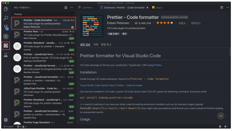 - Prettier : 자동으로 코드의 스타일을 관리해주는 도구이다. (윈도우 단축 옵션 : Alt + Shift + F)