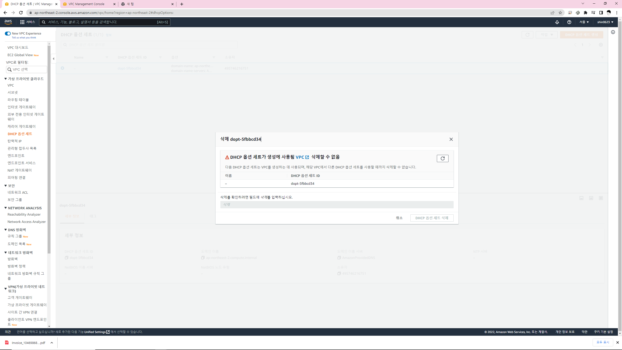 AWS VPC 로 가서 1 ~ 4 표시가 되어있는 항목은 모두 삭제해주자.