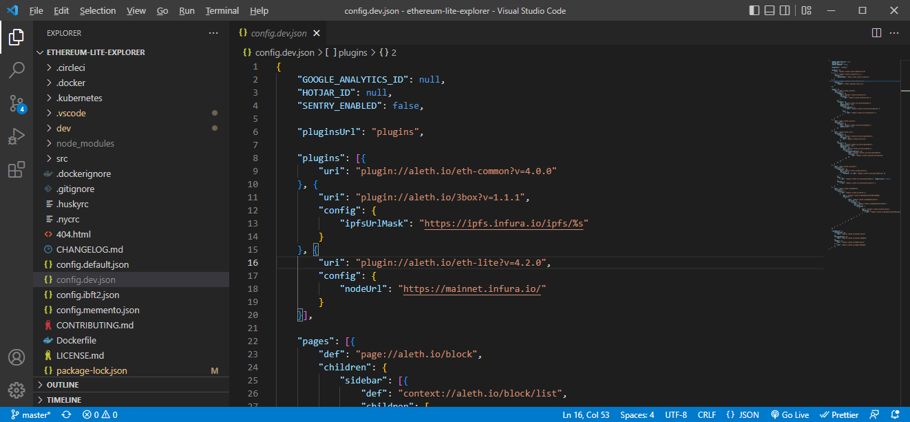 VScode 를 실행하고, config.dev.json 파일에 ?v=4.2.0 부분을 지우고, nodeUrl 부분을 http://127.0.0.1:8545 로 변경해준다.