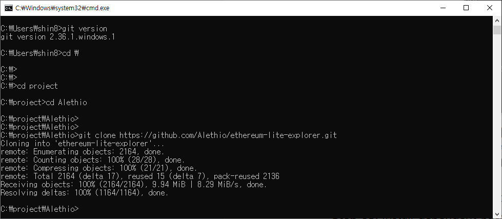 설치하고자 하는 곳에 폴더를 만들고 이동, git clone 명령을 통해 소스를 받아온다.