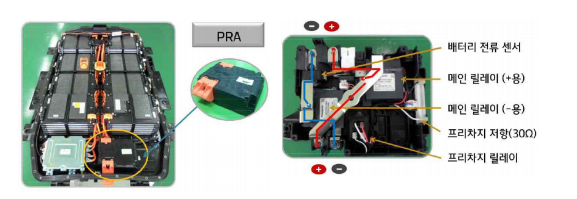 | 2 | 파워 릴레이 어셈블리 (PRA) | Power Relay Assembly란 단어로 배터리 시스템의 전원을 단속하는 장치 |