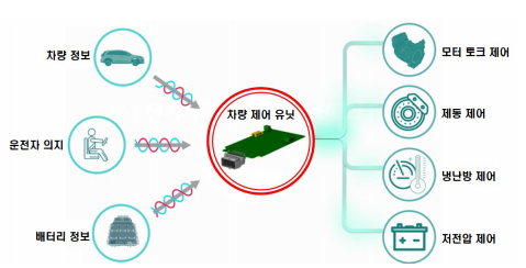 VCU는 모든 제어기를 종합적으로 제어하는 최상위 마스터 컴퓨터로서 운전자의 요구사항에 적합하도록 최적인 상태로 차량의 속도, 배터리 및 각종 제어기를 제어한다.