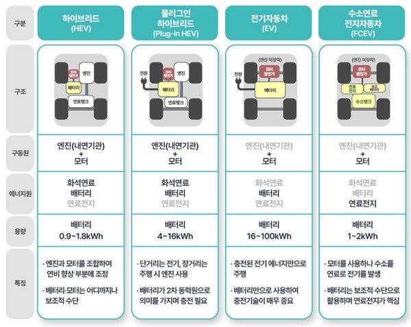 》 전기 자동차의 분류는 사용 동력 및 배터리의 종류에 따라 크게 4가지로 구분이 된다.