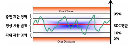 SOC 는 전기차의 실제 운행 중에는 배터리 상태가 매우 불규칙하게 변동된다. 이를 적정한 범위 내에서 제어하고 과충전과 과방전을 막기 위한 제어를 SOC 균형제어라고 한다. BMS 는 배터리 SOC값을 산출하여 95% 이상 에서는 충전을 제한하고, 5% 미만에서는 방전을 제한하도록 차량 컨트롤 유닛에 요청하며 고전압 배터리가 최적의 효율을 낼 수가 있는 영역 내에서 SOC를 유지하도록 가종 파워를 제한한다.