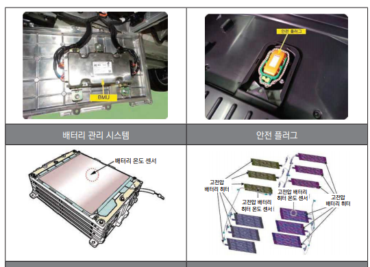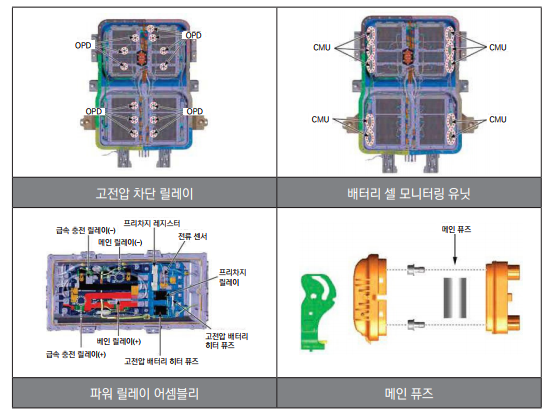 》아래 표는 배터리 관리 시스템, 파워 릴레이 어셈블리, 안전플러그에 대한 간략 설명을 나타내었다.
