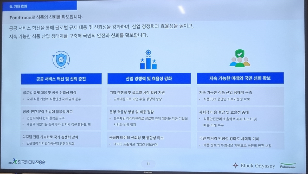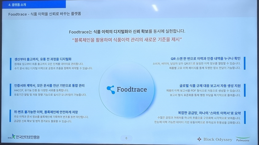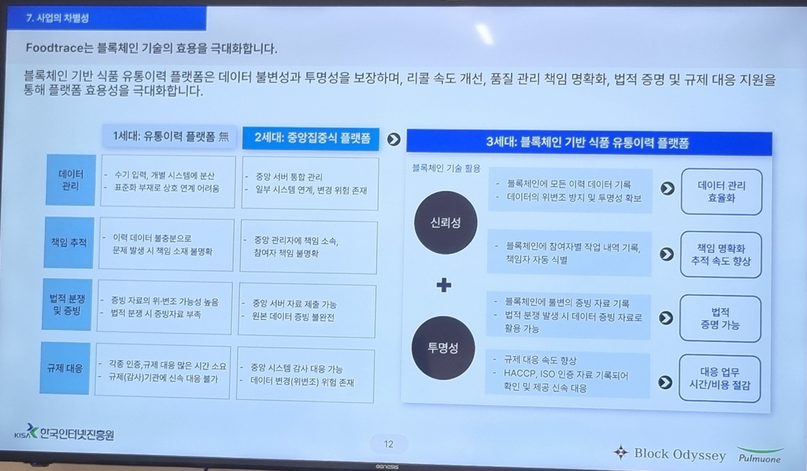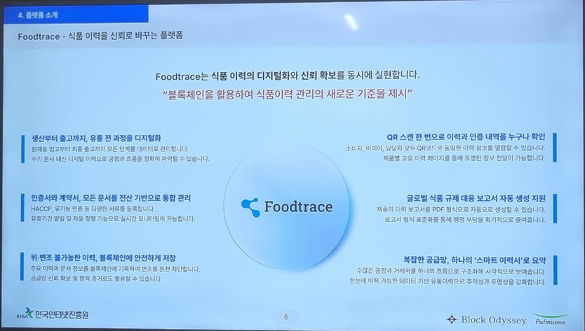 식품의 원산지, 유통 과정, 제조 이력 등을 블록체인으로 기록해 투명하게 보여주는 서비스인데, 생각보다 훨씬 실용적이어서 인상이 깊었다.
